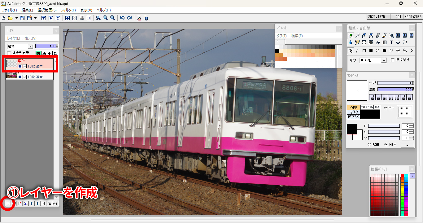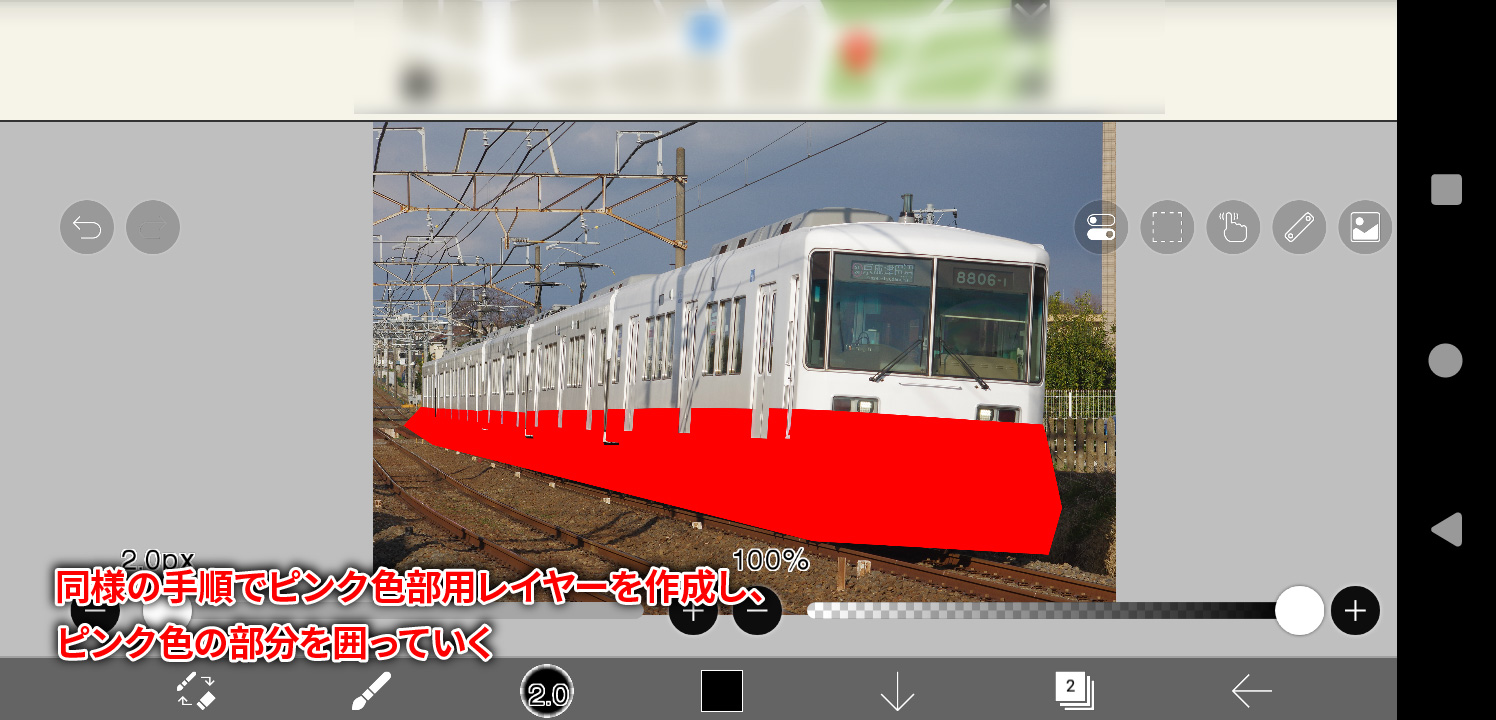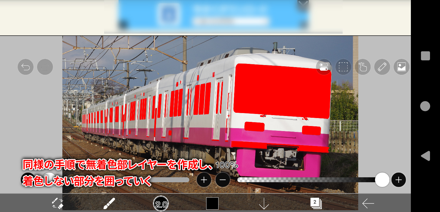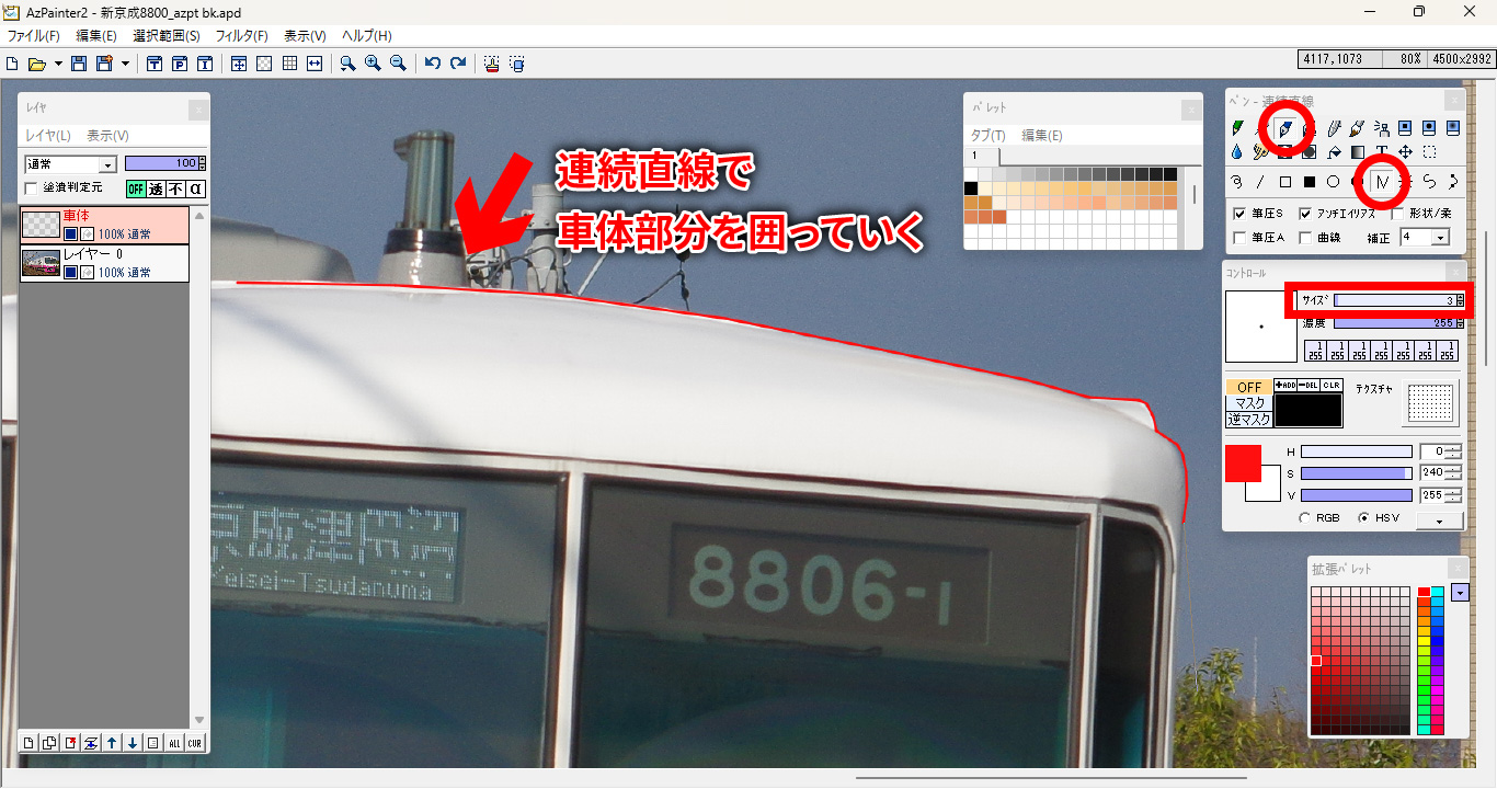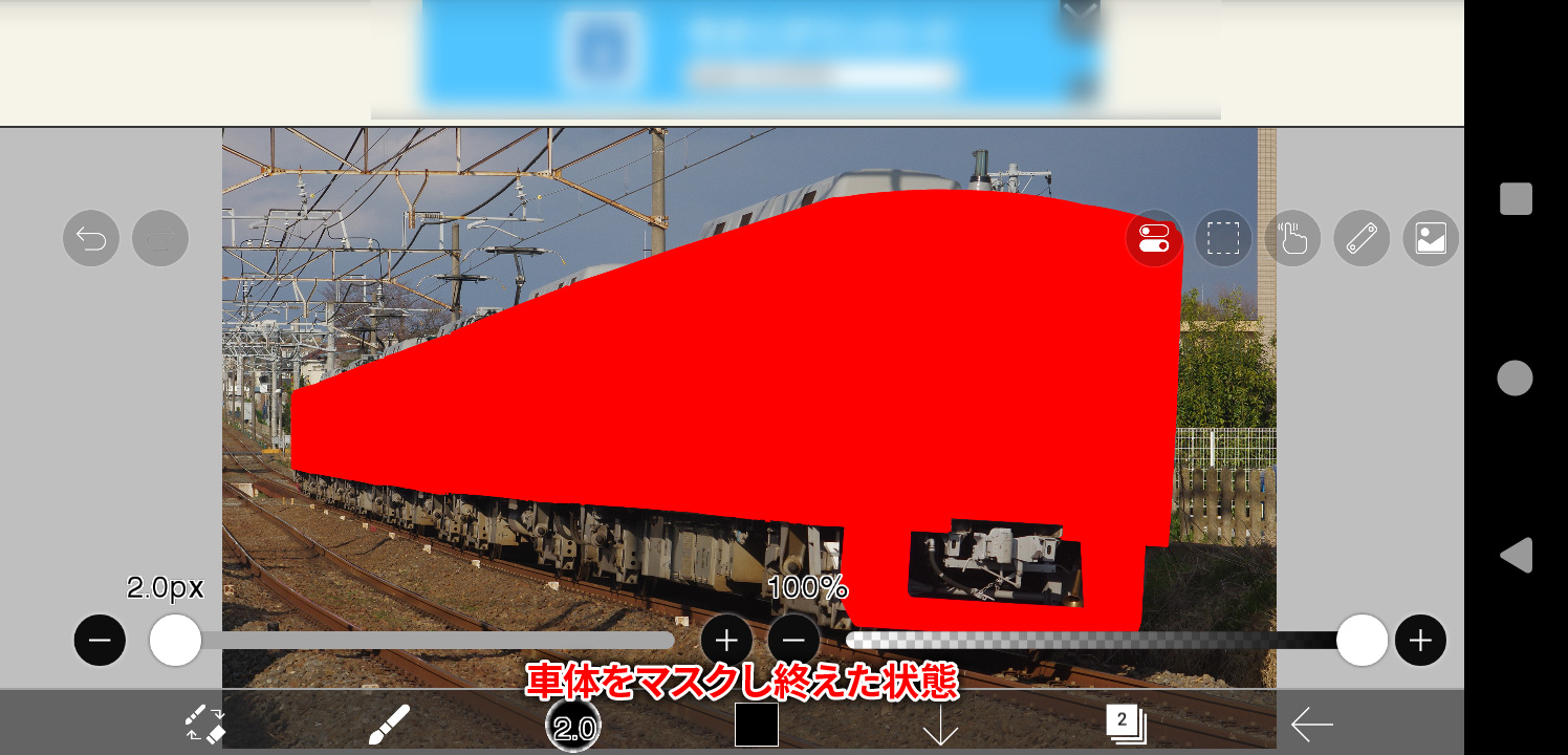 次に無着色部(車体のうち、窓や前照灯など着色を行わない部分)のマスクを作成します。