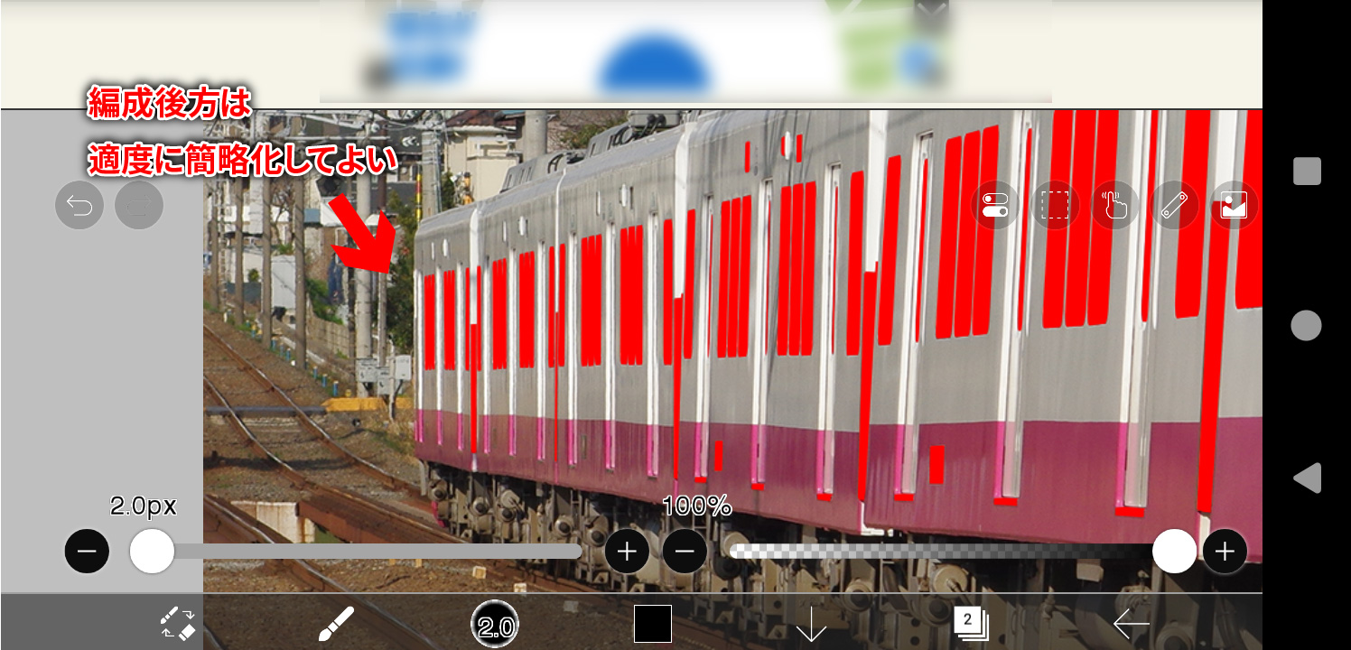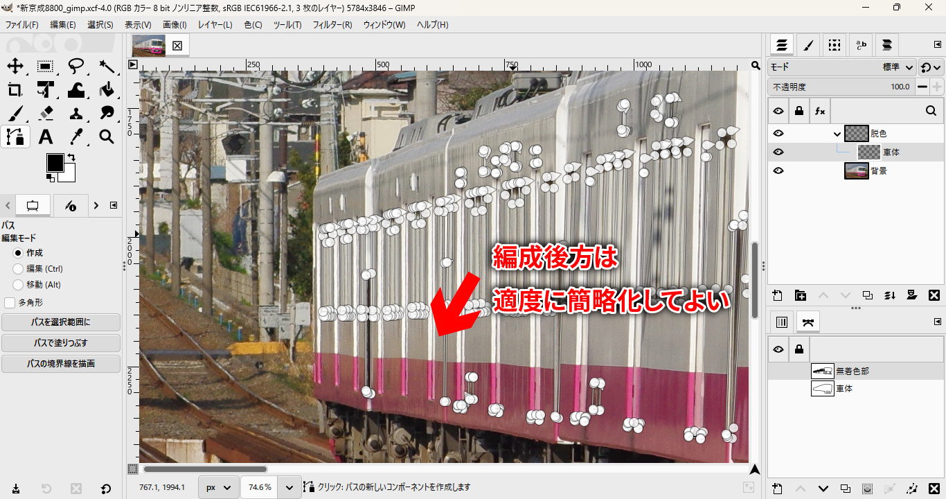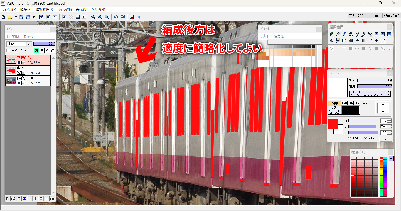 形が複雑になり作業が大変ですので、編成後方は適度に省略化してしまうのも手です。