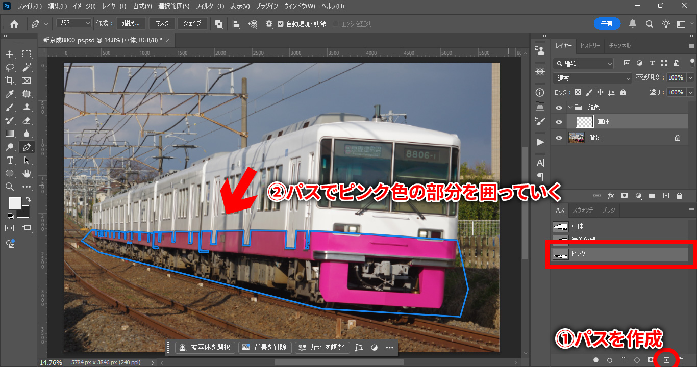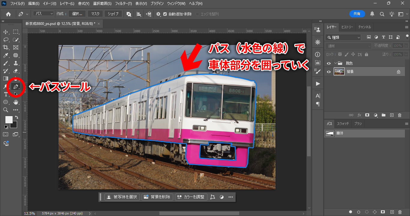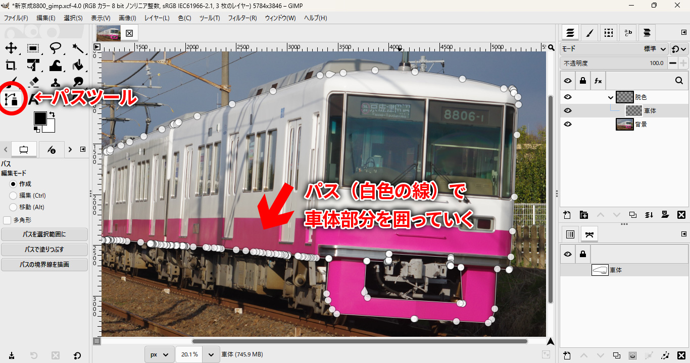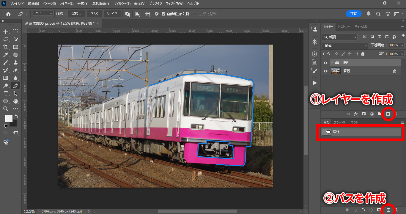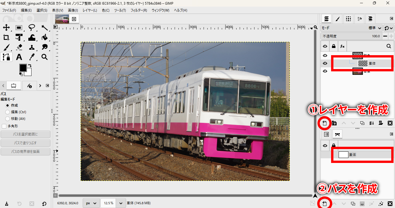 車体マスク用の新規レイヤーと、新規パスを作成します。