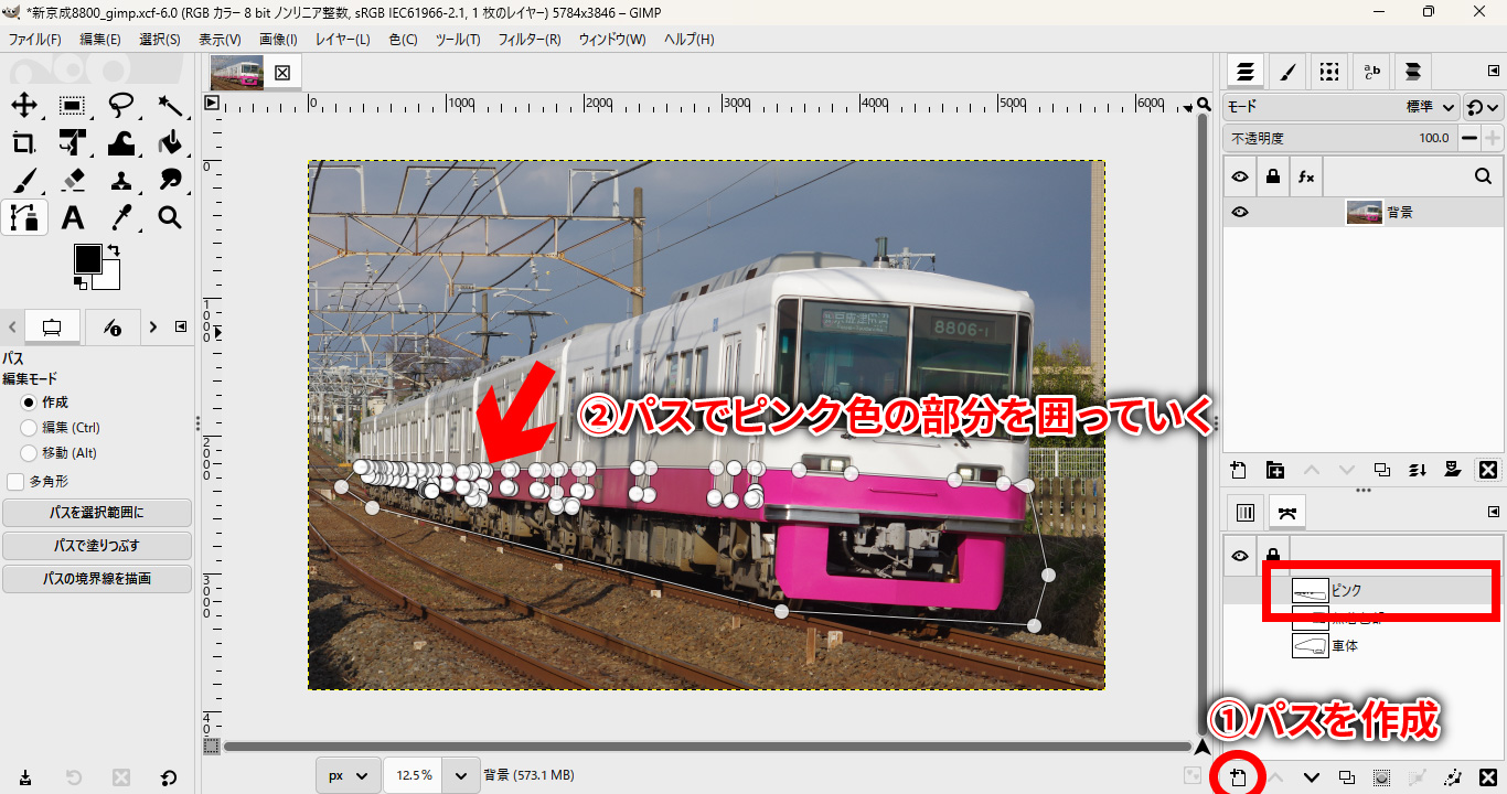 先ほどと同様に、無着色部用の新規レイヤーと新規パスを作成。