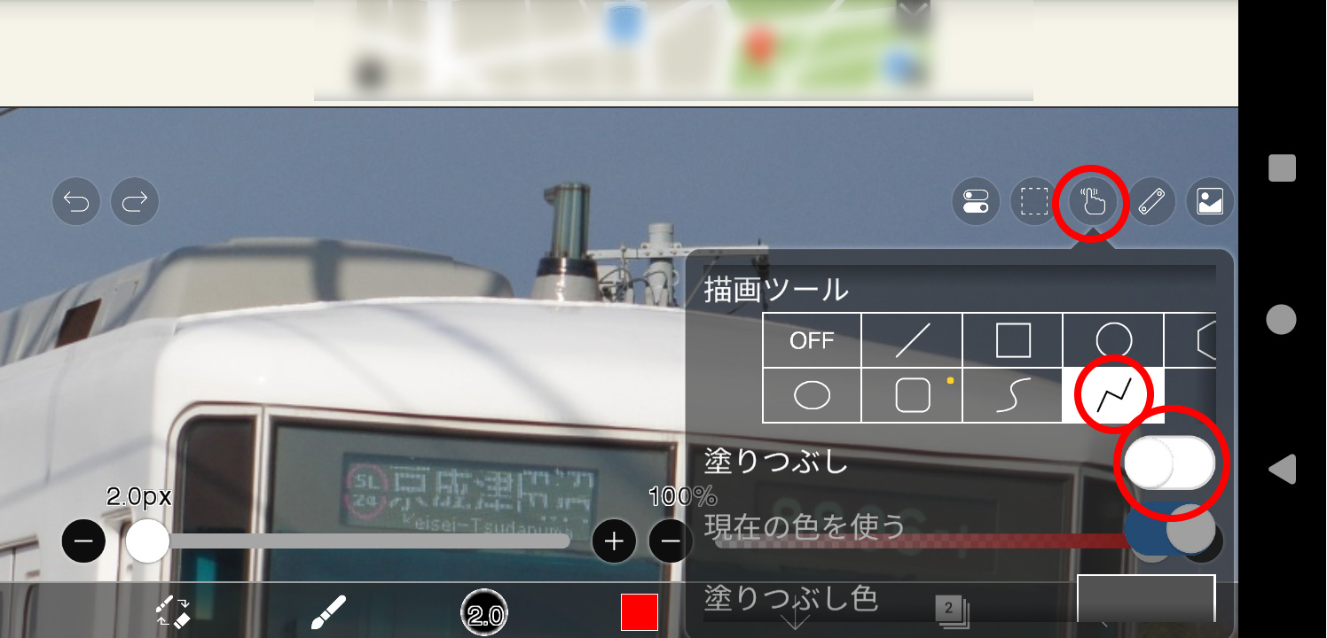 なぞった中の部分は塗りつぶしツール(バケツ)で塗りつぶします。