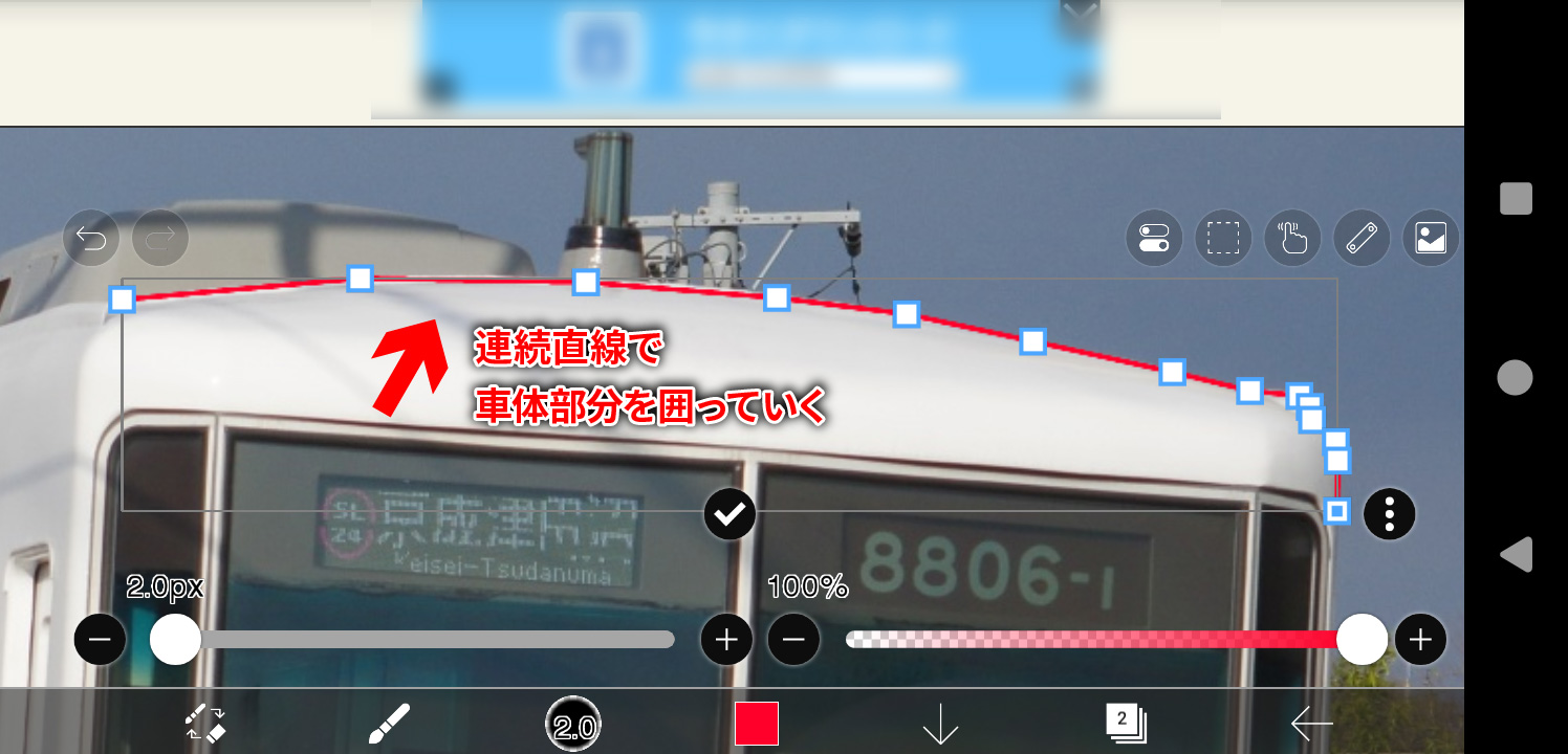 「パス」「連続直線」という機能を使って車体の輪郭をなぞっていきます。