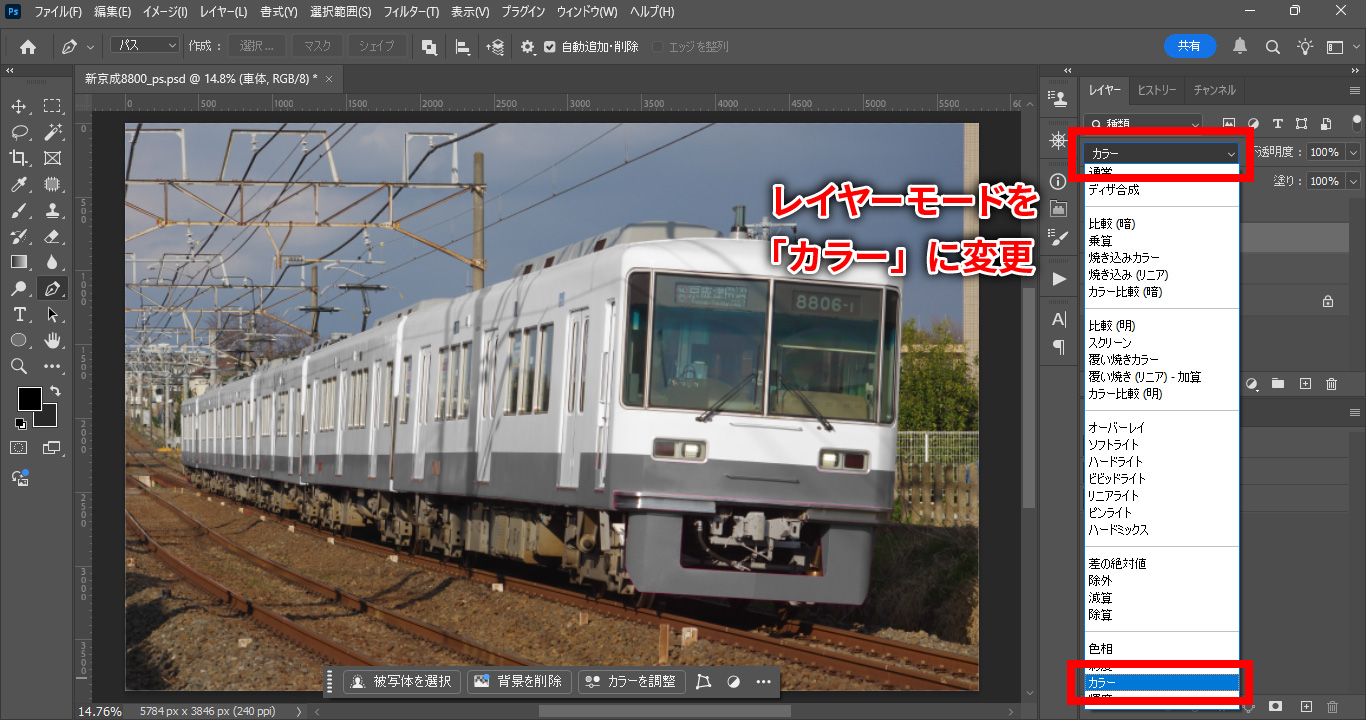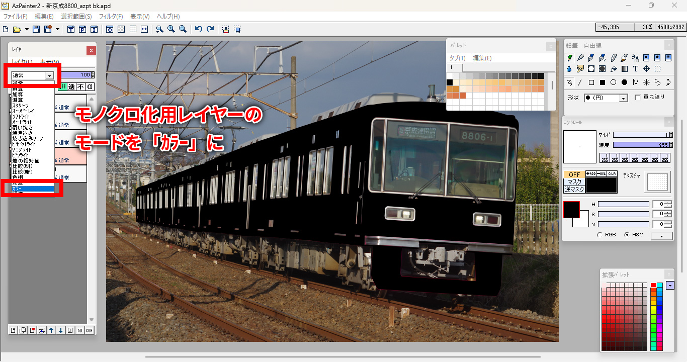 2.レイヤーモードを変更