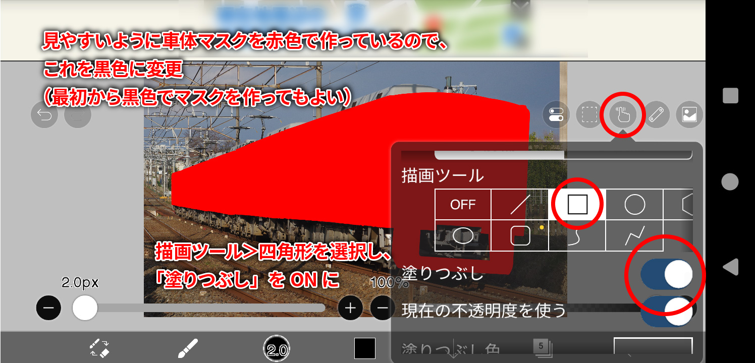 (最初から黒色でマスクを作成してもよいです)