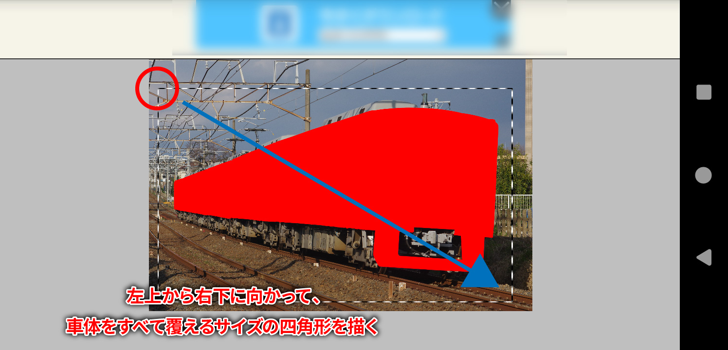 それができましたら、四角形の描画ツールを利用し、画面の左上の角から右下に向かって、なるべく広い範囲を覆える四角形を描きます。