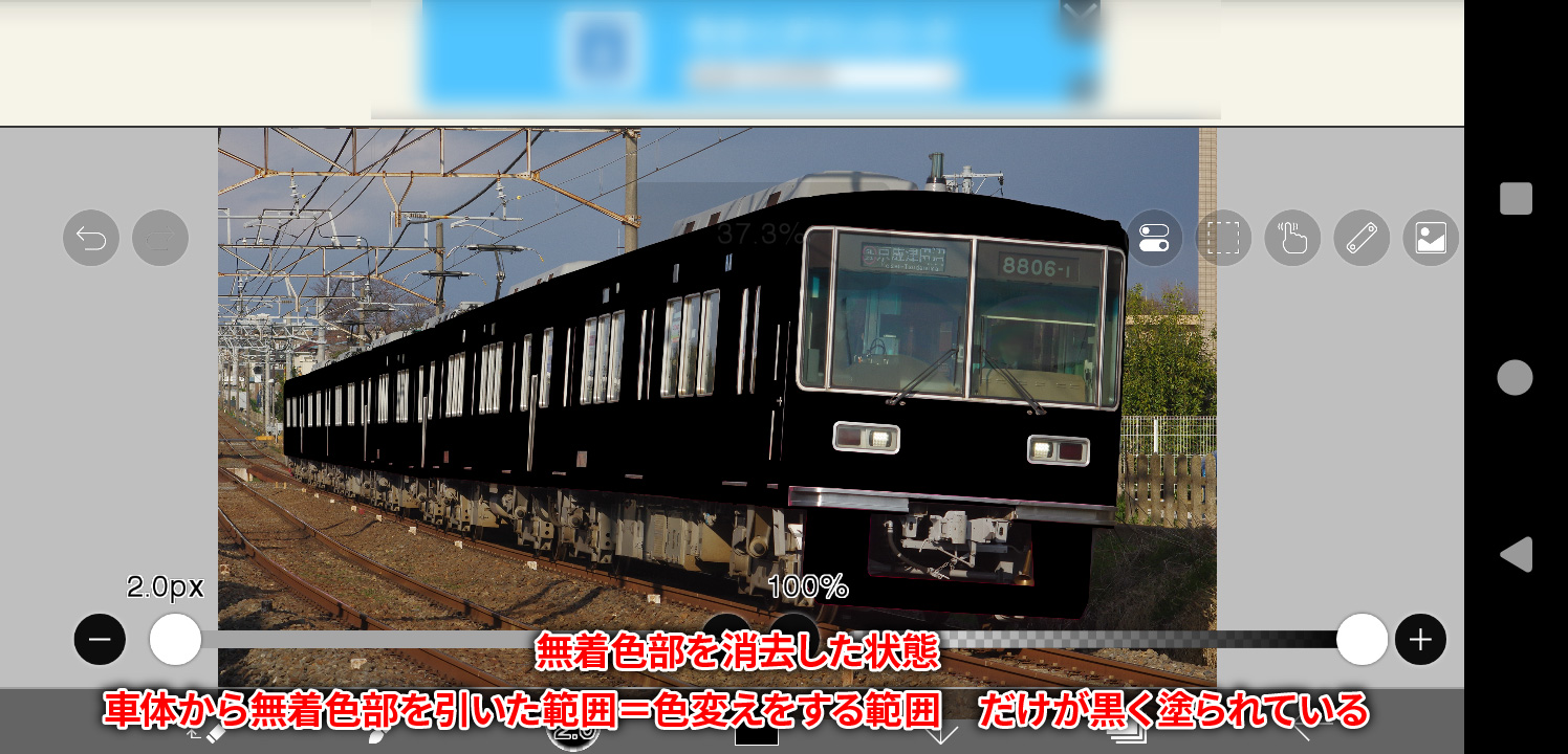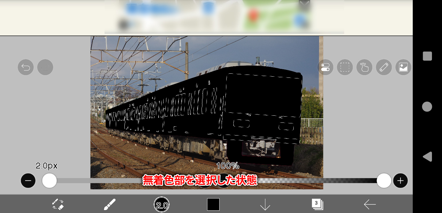 そうしますと、無着色部レイヤーパスでマスクした範囲が消えるかと思います。